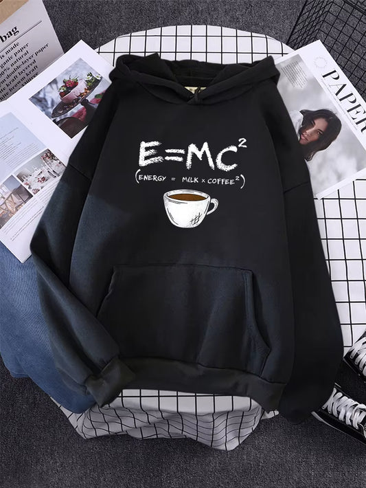 Hoodies E=Mc Coffee Personality Print Hoody for Women Harajuku Aesthetic Hoodie Warm Womens Fleece Oversized Sweatshirt Female
