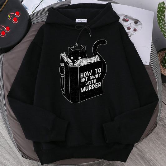 Men's And Women's Hooded Sweater Cartoon Anime Cute Cat Reading Print Sweatshirt