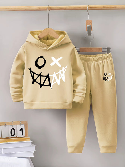 2Sets Fall/Winter New Casual Comfort Sports Style Warm Boy Print Warm Lining Hoodie and Tracksuit Pants