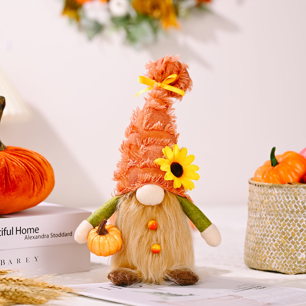 Autumn Decoration Harvest Season Old Hat Holding Pumpkin Doll